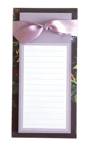 Includes 60 lined sheets and hand-tied ribbon detail. Each list pad is 9″ x 4.5″.