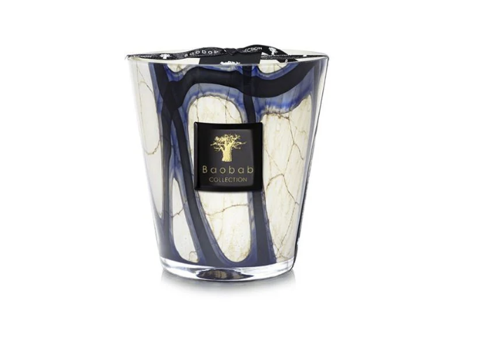 The scented candle is a timeless piece of sophistication and elegance. Its marbled glass with intense blue effects perfectly illustrates the amazing personality of Lazuli Stones.