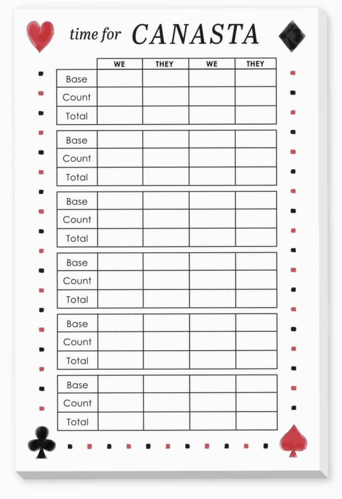 Experience the joy of writing with Donovan Designs’ CANASTA SCORE LARGE NOTEPAD. It measures 5.5″x 8.5″, providing ample space for all your jotting needs, and comes with 50 sheets. This notepad upholds our brand’s tradition of creating simple, classic, and colorful stationery