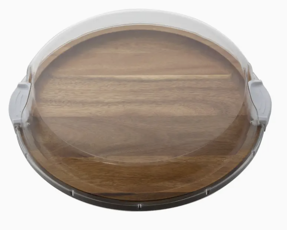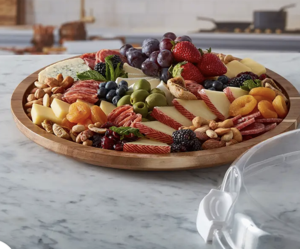 Make It. Take It. Enjoy It.” Elevate your hosting game with the Farberware “Build a Board” acacia cutting board , a versatile addition measuring 14 inches round that brings innovation and elegance to your gatherings. Craft stunning charcuterie arrangements using the built-in single compartment, allowing you to arrange cheeses, fruits, nuts, or meats for an exquisite touch. Fill the Build a Board with your chosen ingredients to create a customizable arrangement, designed with on-the- go convenience in mind to ensure every ingredient stays secure during travel, whether it’s a picnic or a friend’s house. The practical lockingplastic storage lid provides food freshness and security, making transporting your charcuterie board effortless. Ideal for gifting on various occasions, including weddings, newlyweds, hostess gifts, or housewarming presents, the Farberware “Build a Board” combines sophistication and utility for every celebration. Its dual-sided design provides dual functionality: prep