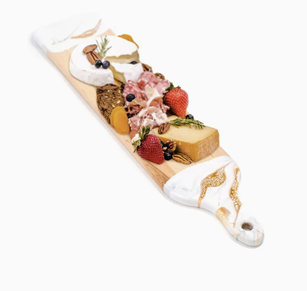 Lynn and Liana Acacia Resin Baguette Board 5×24″ White, Grey, and Gold