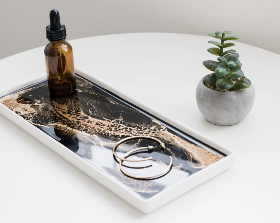Lynn and Liana Large Ceramic Resin Tray Black Ember