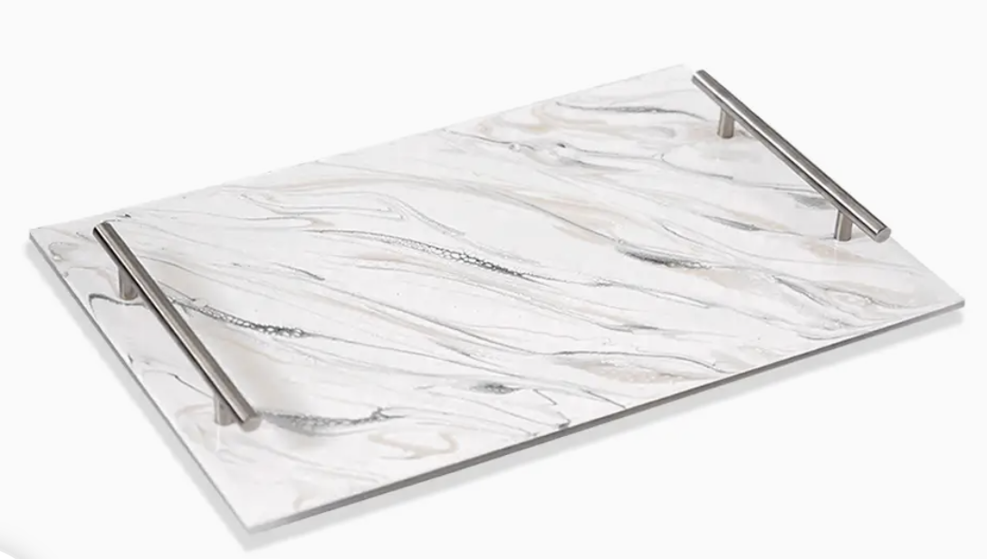 Lynn and Liana Resin Serving Tray w/Handles 12×18 Marble