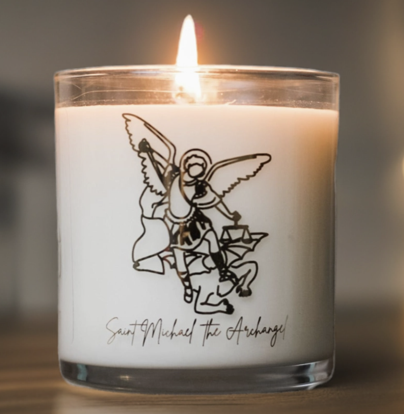 This bold and empowering scent reflects St. Michael’s strength and might, blending rich mahogany, rugged cedar, and earthy geranium with deep, resinous woods. A hint of lavender adds a fresh balance, while musk and oak ground the fragrance with warmth and depth. 𝐏𝐚𝐭𝐫𝐨𝐧 𝐨𝐟: • Soldiers • Police • Grocers • Bankers • Paratroopers • The Sick • Warriors 𝐅𝐞𝐚𝐬𝐭 𝐃𝐚𝐲𝐬: • September 29 𝐃𝐞𝐭𝐚𝐢𝐥𝐬: • Weight: 9 ounces • Burn Time: 40+ Hours • 100% All Natural Soy