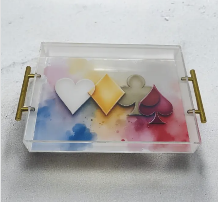 Resinate By KS 11×14 Playing Card Symbols Art Acrylic Tray Gold Handles