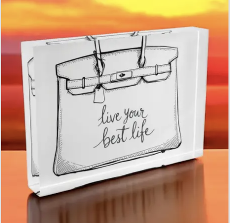 Resinate By KS Crystal Block Table Decor Live Your Best Life Handbag