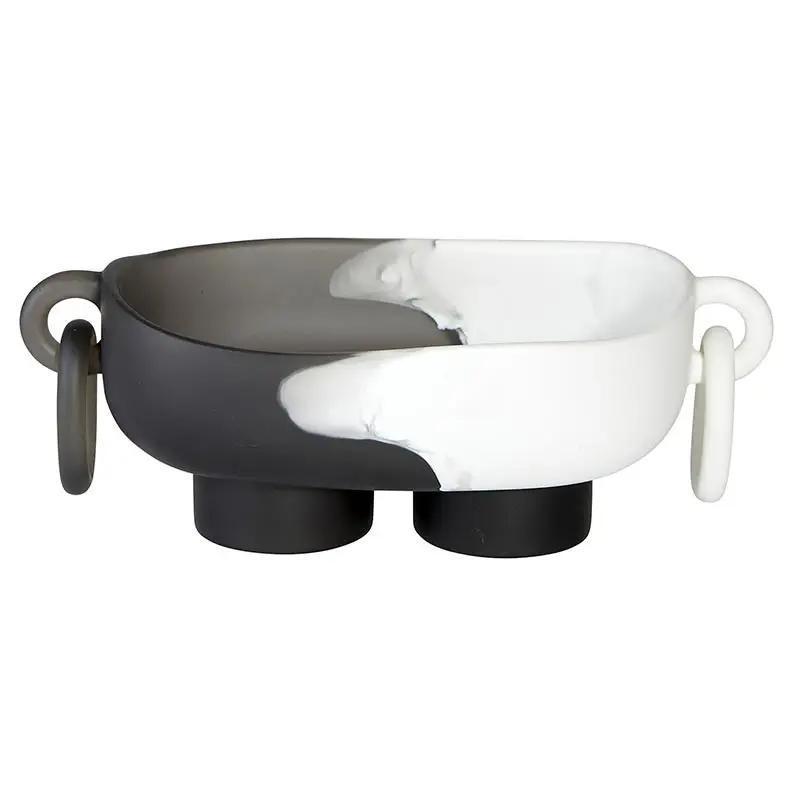 Introducing our Resin Footed Oblong Bowl with Rings-a stunning and unique addition to your home decor collection. · This beautiful bowl is crafted from high-quality resin, making it both durable and long-lasting · Unique design elements like side rings, oblong shape, footed legs give this bowl an exotic, novel look · Each piece has variation in its swirl color making it truly one-of-a-kind · Part of the Resinware Collection · Material: Resin · Size: 12″ L x 7.25″ W x 4″ H · Care Instructions: Hand Wash Only