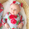 Stephan Baby Headband – Blue Gingham and Red Roses