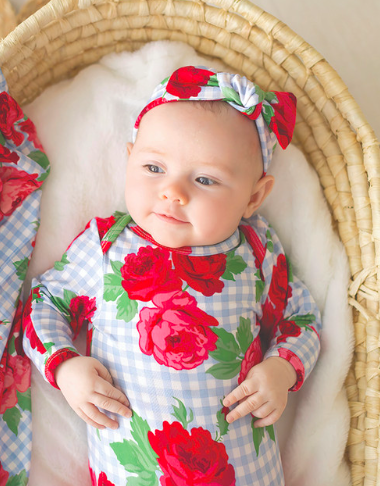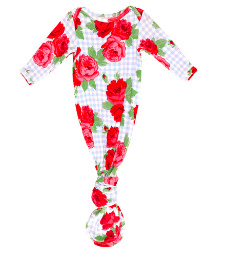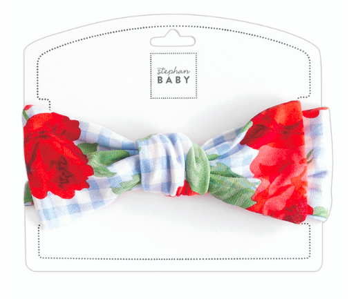 Stephan Baby Knotted Gown and Headband Blue Gingham and Red Roses 0-3 Month