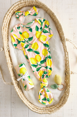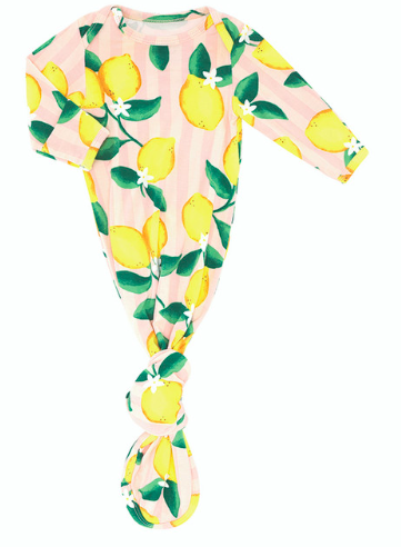 Stephan Baby Knotted Gown and Headband Pink Stripes and Lemons 0-3 Month