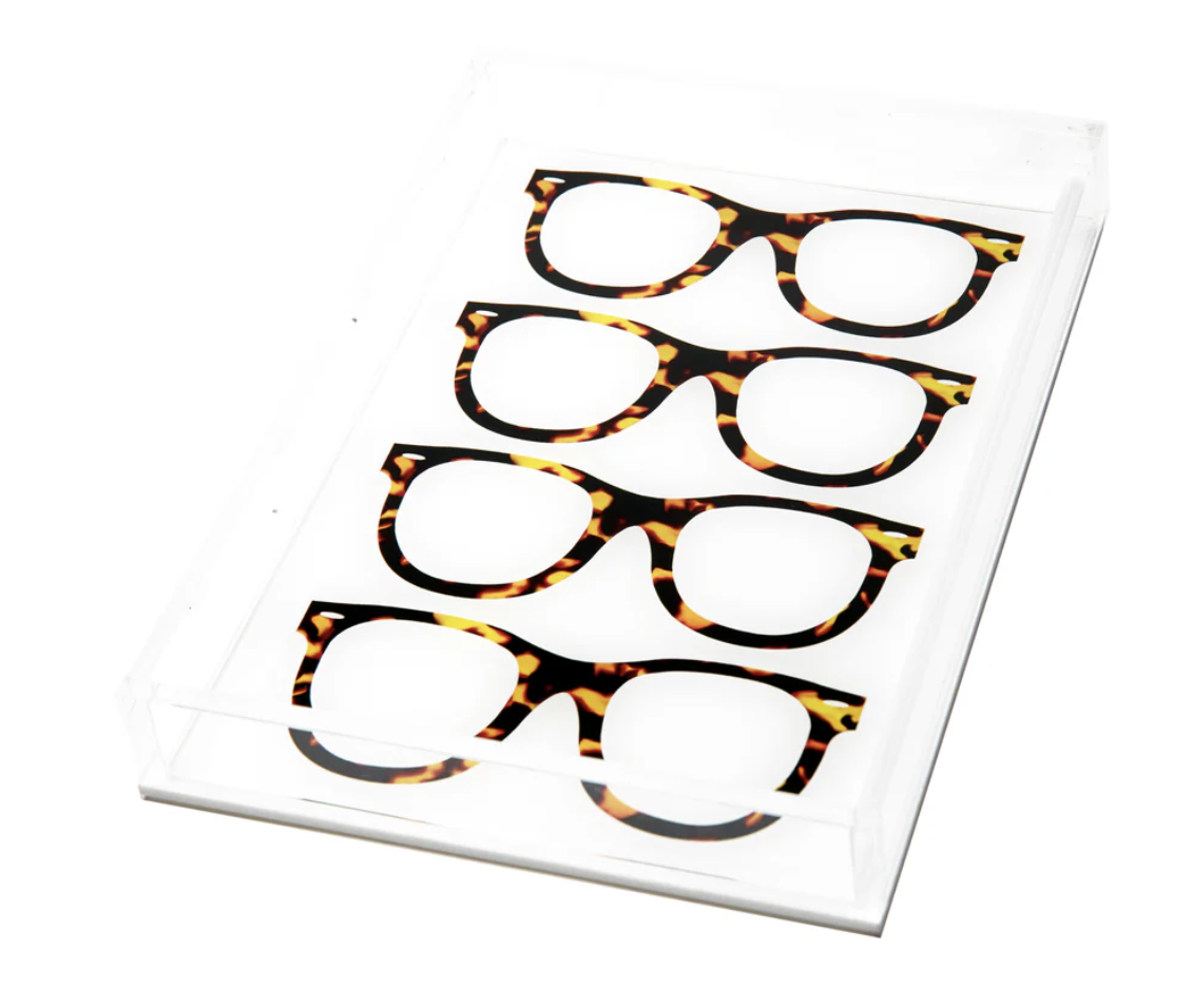 Always looking for your glasses? Problem solved. Our tortoise graphic print tray features a playful multi-color glasses pattern on a bright white background—a stylish spot to stash your readers, sunnies, or anything else you tend to misplace.